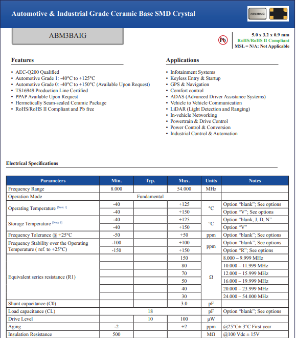 Abracon晶振,贴片晶振,ABM3BAIG晶振,ABM3BAIG-25.000MHZ-B2-T晶振
