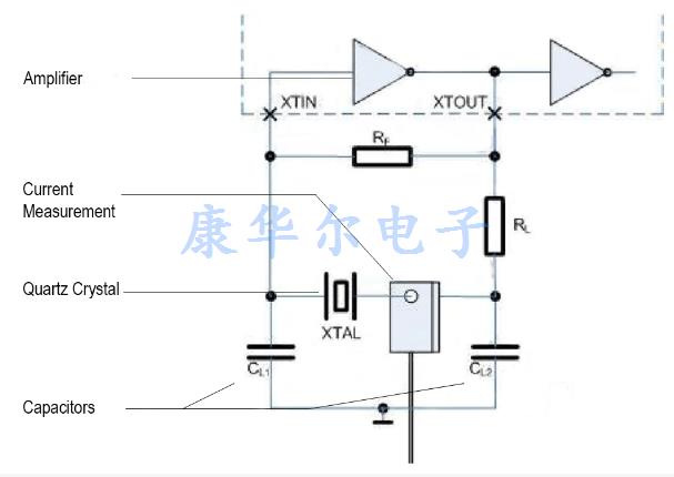图2:为了计算驱动水平,测量流过石英晶体的电流。