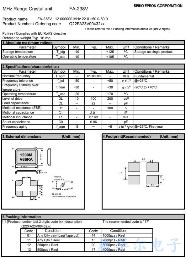 3225爱普生无源晶振编码Q22FA23V0043200,智能电表远程抄表专用晶振