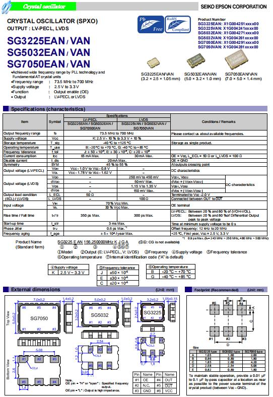 | X1G004271003300 | SG5032EAN | 156.250000 MHz | 5.00 x 3.20 x 1.20 mm | LV-PECL | 2.250 to 3.630 V | -40 to 85 °C | +/-30 ppm |