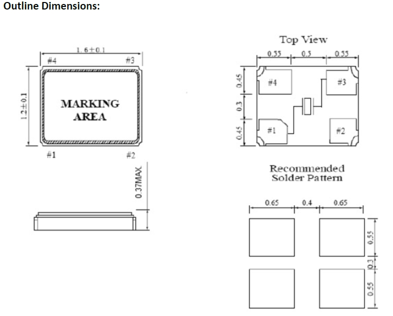 FCD-Tech晶振 F1612A-20-20-K-30-F-27.000MHz 6G无线应用晶体 尺寸图