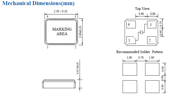 金属面四脚贴片 | 尺寸 | 2.5*2.0mm |