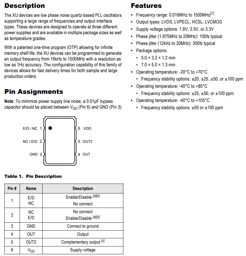 XU设备是低相位噪声石英基PLL晶体振荡器支持大范围的频率和输出接口类型。这些设备被设计为在三种不同的条件下运行电源,也有多种封装尺寸作为温度等级。拥有专利的一次性程序(OTP),允许无限存储器的保质期,XU设备可以编程生成输出频率为16kHz至1500MHz,分辨率为低至1Hz精度。此系列的配置能力设备允许快速交付样品和大样品生产订单。IDT有源振荡器|XUL535156.250JS6I8|6G路由器晶振.