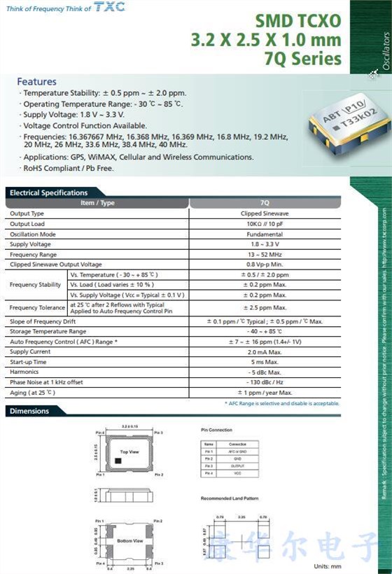 3225晶技TXC温补晶振代码7Q26002005,华为折叠屏柔性屏手机厂家晶振