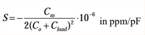 现在你知道如何计算负载电容 电路呈现给晶体,你应该选择什么负载电容?在回答这个问题之前,你需要知道晶振中心频率对负载的灵敏度电容。这称为微调灵敏度S,由下式给出: