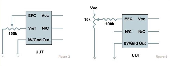 TCXO石英晶振可以通过指定的EFC电压进行调整,或通过用参考电压(VREF)偏置EFC(参考图3)进行调整,或者中心频率可以由Greenray内部设置,而不能由客户进行调整。EFC输入对于喜欢随时间重新校准TCXO的客户来说是有利的。一些通过软件和D/a转换器使用电气调节来偏置输入,而另一些则只使用简单的电位计分压器来调节单元的外部电压。