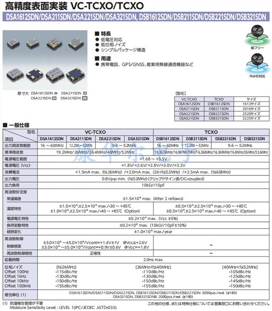 进口大真空TCXO,1XXB16368MAA,低相位噪声晶振,DSB221SDN晶振