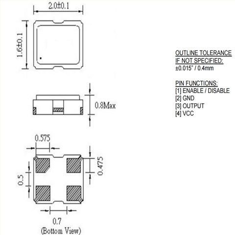 | CO2016系列2 x 1.6 mm 25 MHz 3.3 V ±50 ppm表面贴装时钟振荡器 | ||||||
