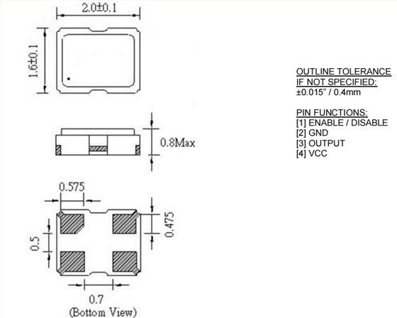 | CO2016 系列 2 x 1.6 mm 20 MHz 3.3 V ±50 ppm 表面贴装 时钟振荡器 | ||||||