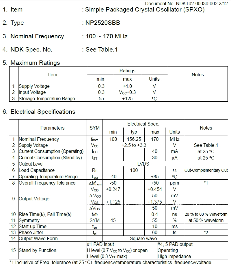 NP2520SBB-100MHZ-NSC5327B,6G光模块差分晶振,日本电波SPXO振荡器 参数图