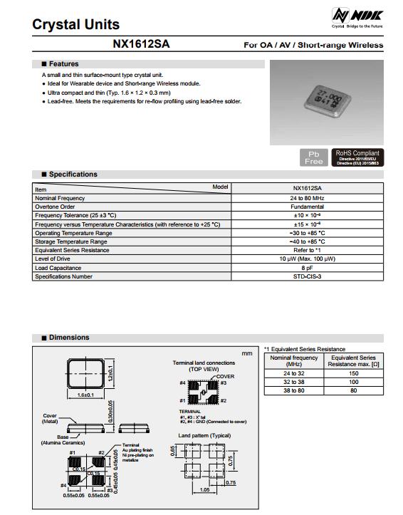 NDK晶振,贴片晶振,NX1612SA晶振,NX1612SA-32.000MHZ-CHP-CIS-3晶振