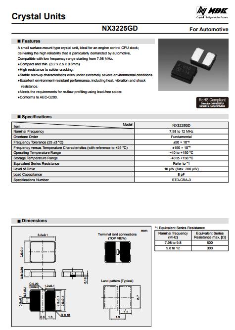 采购:NDK晶振,贴片晶振,NX3225GD晶振,NX3225GD-10.000M-STD-CRA-3晶振